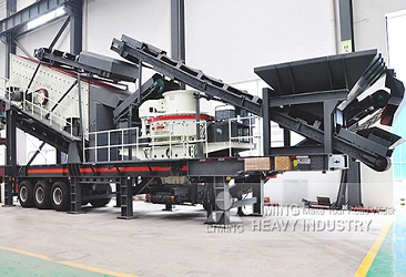 移動制砂廠,顧名思義,是可以移動的制砂生產(chǎn)線。它的整個處理設備可以靈活地轉(zhuǎn)移。移動制砂機由帶有進料器,顎式破碎機,反擊式破碎機,錘式破碎機,制砂機和振動篩的輪胎式或履帶式機架組成。整機將進料,粉碎和篩分一體化。我們可以根據(jù)原料的性質(zhì)、最終產(chǎn)品的粒徑以及產(chǎn)量來靈活選擇設備。例如,對于軟質(zhì)材料,宜使用移動式反擊式破碎機,對于脆性材料,宜采用移動圓錐式破碎機。